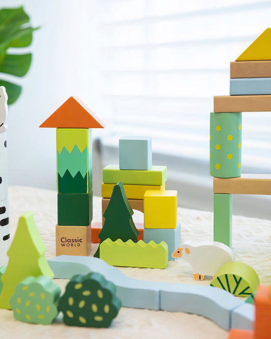 Ahşap Orman Temalı Blok Seti - 50 Parça Eğitici Yapı Oyuncakları