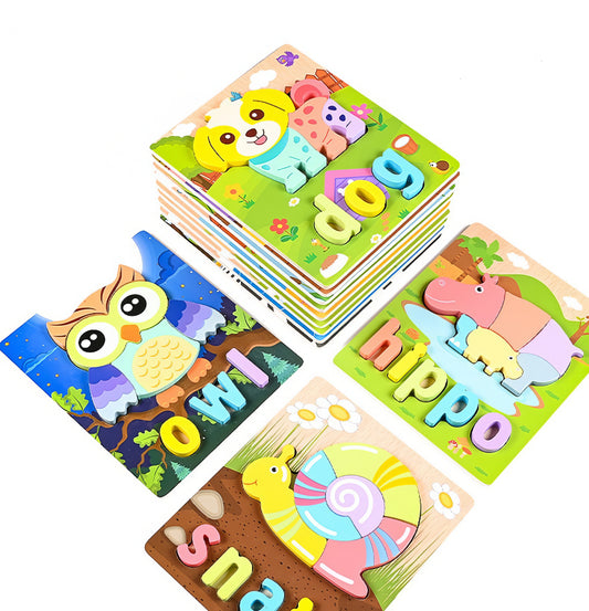 TÜRKİYEYE GÖNDERİMİ YOKTUR /Montessori Ahşap 3'lü 3D Puzzle Seti – Kaplan, Tavşan, Panda