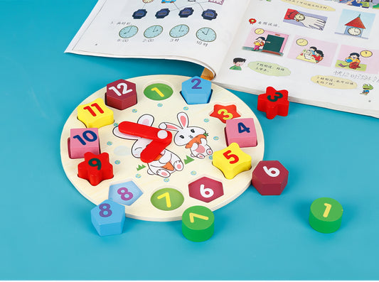 TÜRKİYEYE GÖNDERİMİ YOKTUR /Montessori Ahşap Geometrik Şekilli Öğretici Saat – Eğitici Saat Oyuncağı