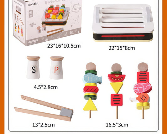 Montessori Ahşap Barbekü Seti – Eğitici Izgara Oyunu ve Şişlerle Mutfak Eğlencesi