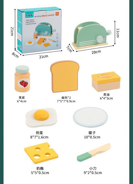 Montessori Ahşap Tost Makinesi Kahvaltı Seti – Eğitici Mutfak Oyuncağı