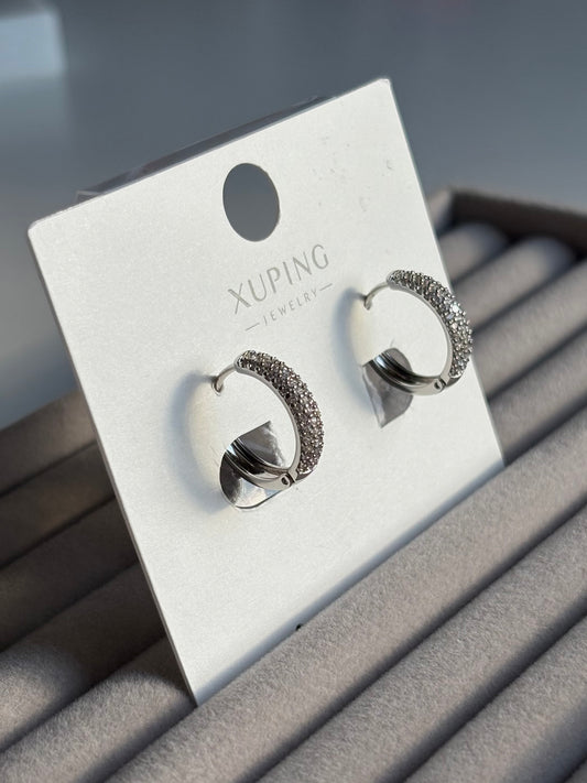 Xuping Çelik Küpe Riva Silver Küpe Işıltılı Halka Model Eternal Sunshine
