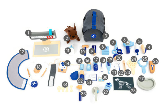 Montessori Ahşap Veteriner Oyuncak Seti – 37 Parça Mavi Taşıma Çantalı