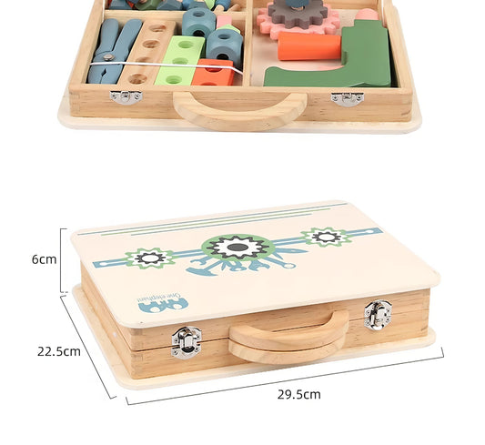 Montessori Ahşap Alet Çantası – Eğitici Tamir Oyuncak Seti (29.5 x 22.5 cm)