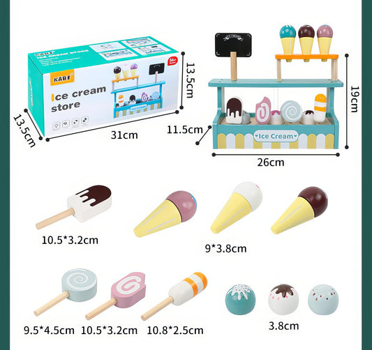 Montessori Ahşap Dondurma Dükkanı Standı | Eğitici Rol Oyun Seti