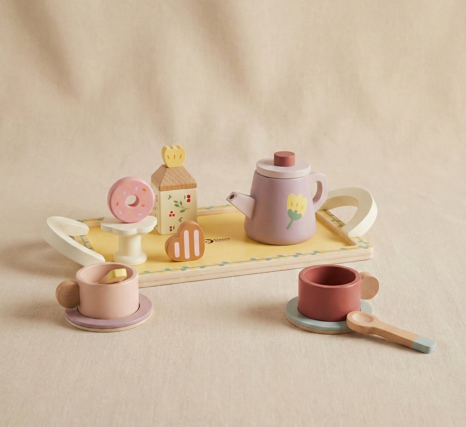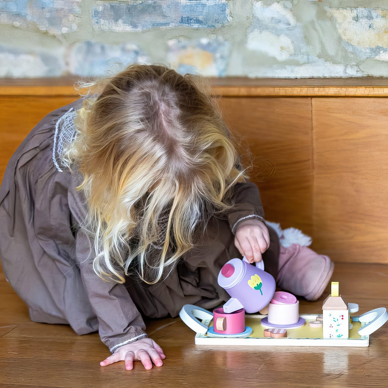 Ahşap Oyuncak Çay Seti - Tepsili & Pastalı Evcilik Oyunu (14 Parça)