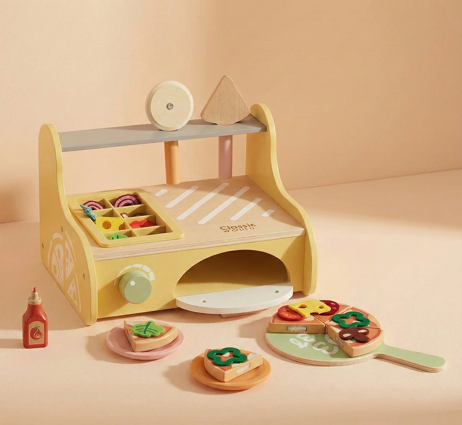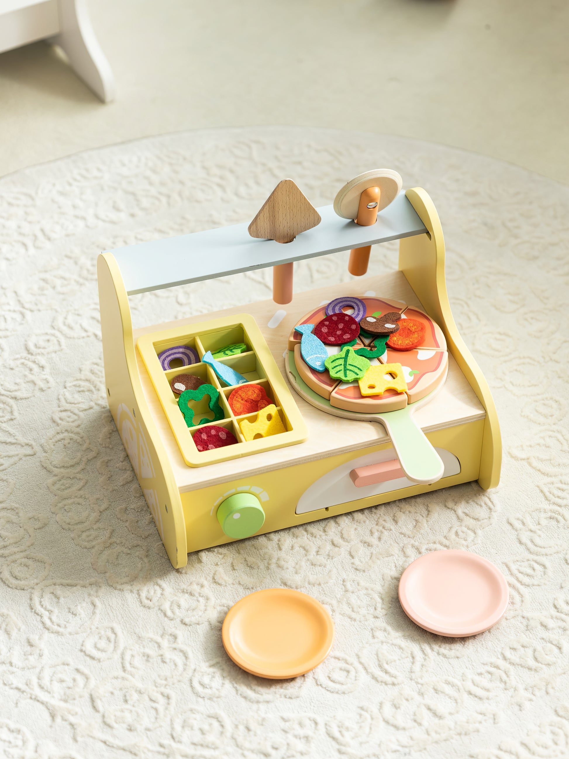 Ahşap Oyuncak Pizza Fırını ve Pişirme Seti (31 Parça)