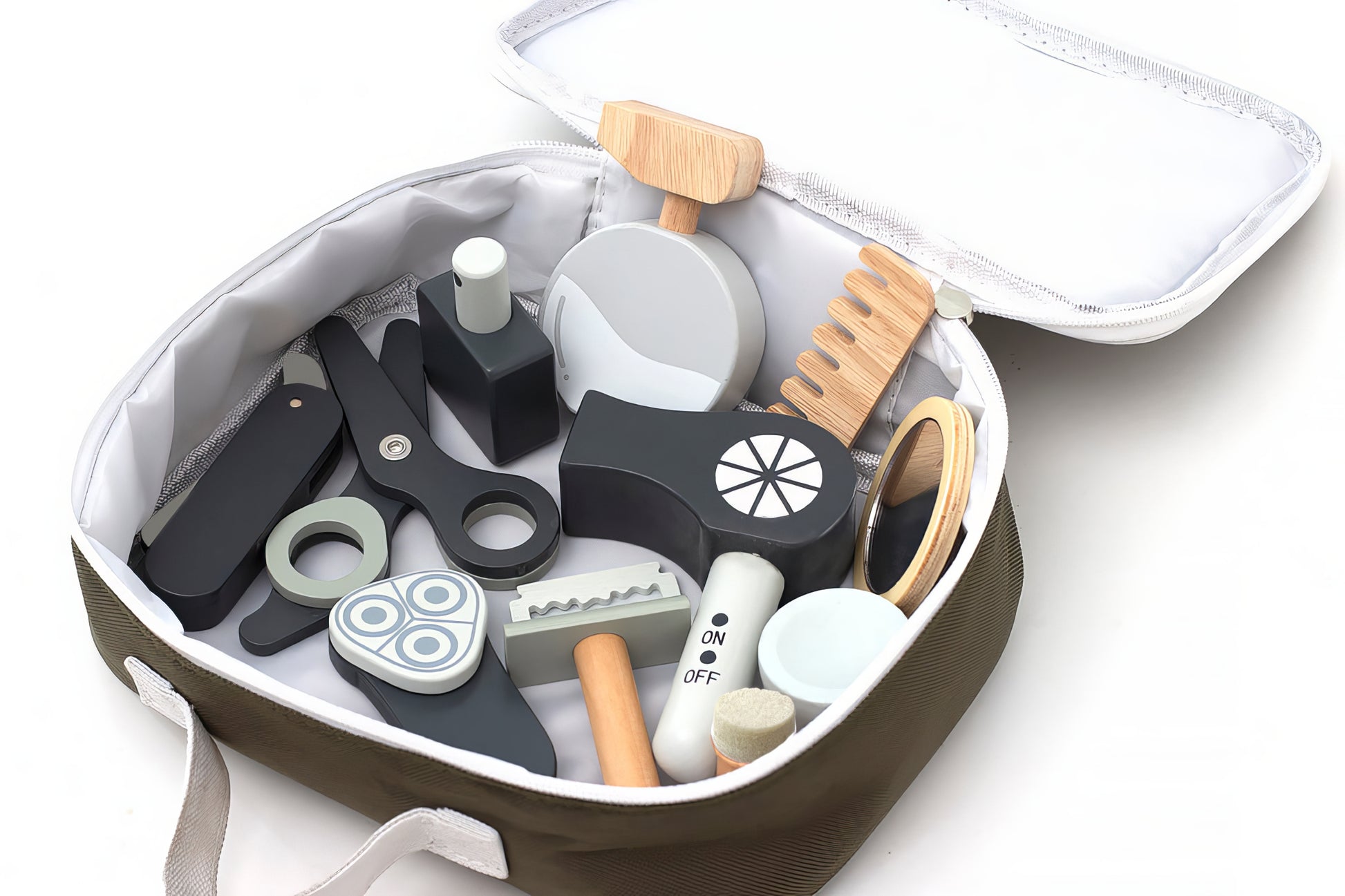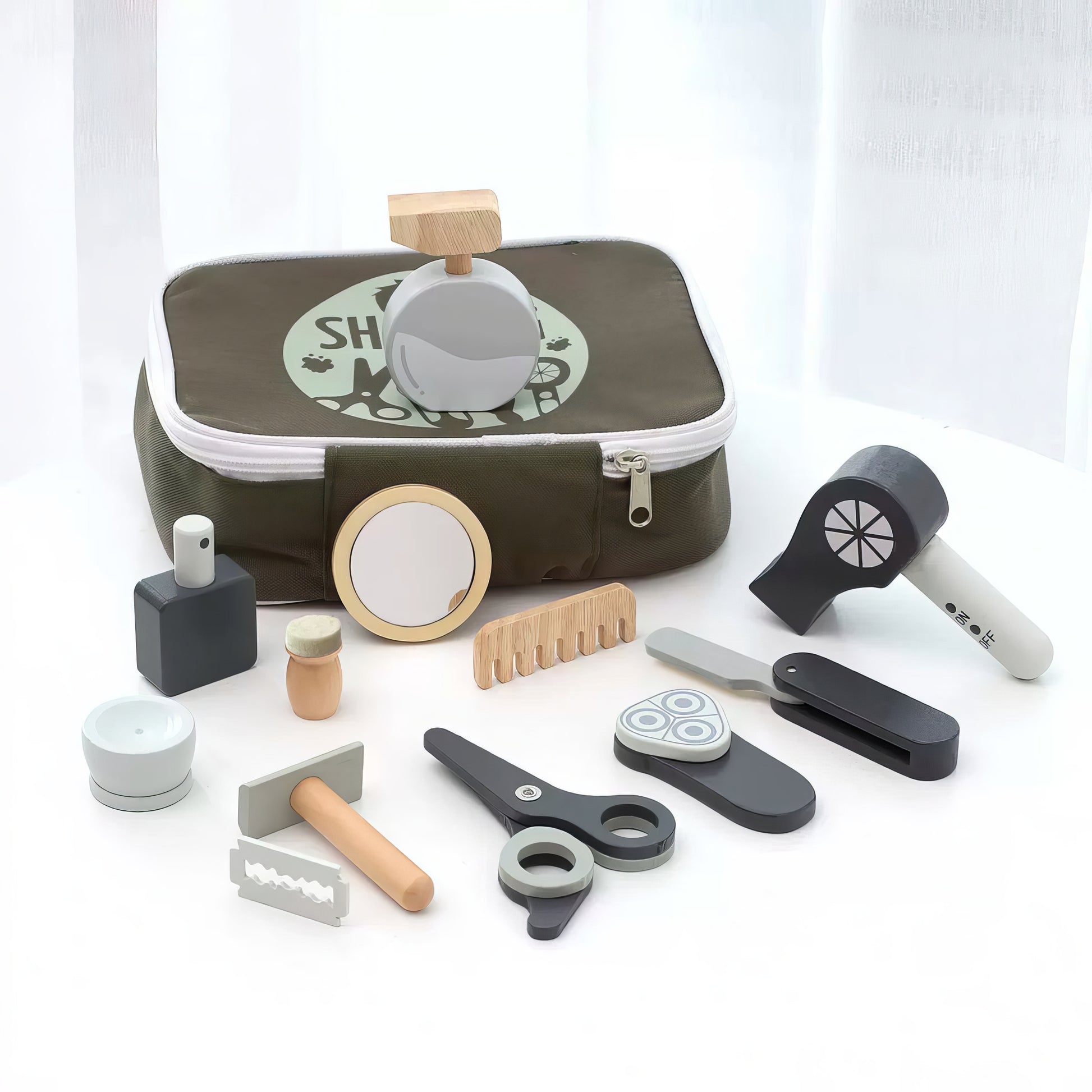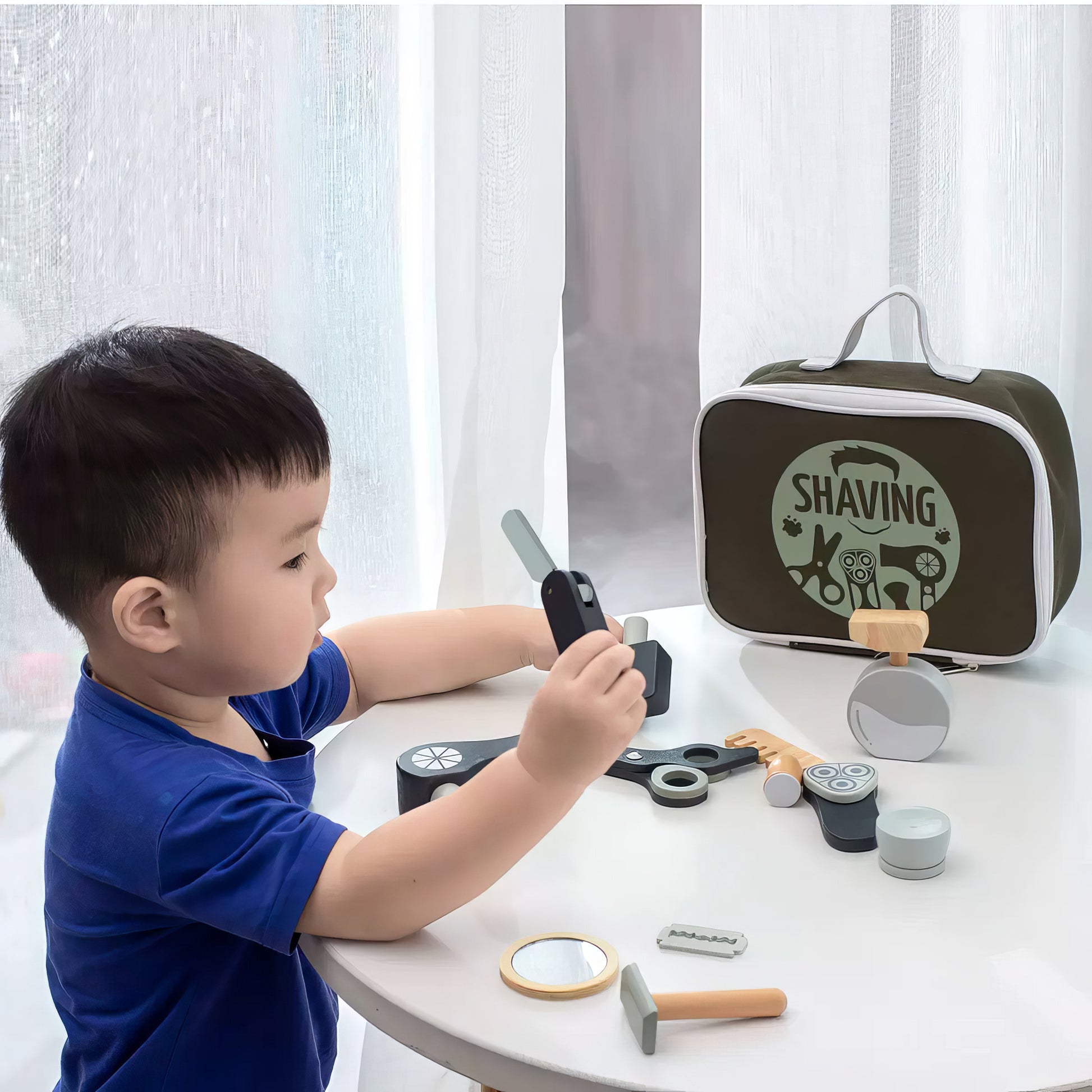 Montessori Ahşap Berber Dükkanı Oyuncak Seti – 3 Yaş Üstü Eğitici Rol Yapma Oyunu