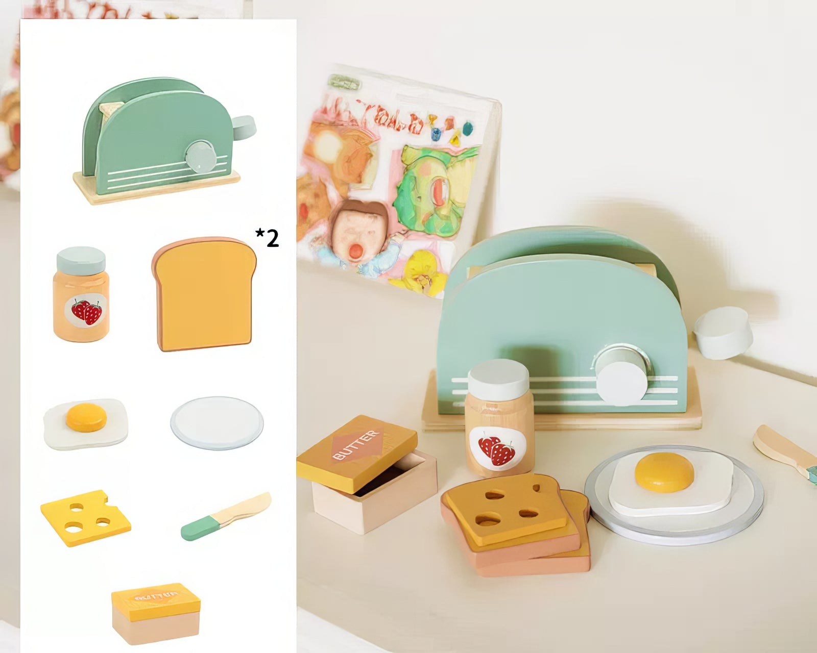 Montessori Ahşap Tost Makinesi Kahvaltı Seti – Eğitici Mutfak Oyuncağı