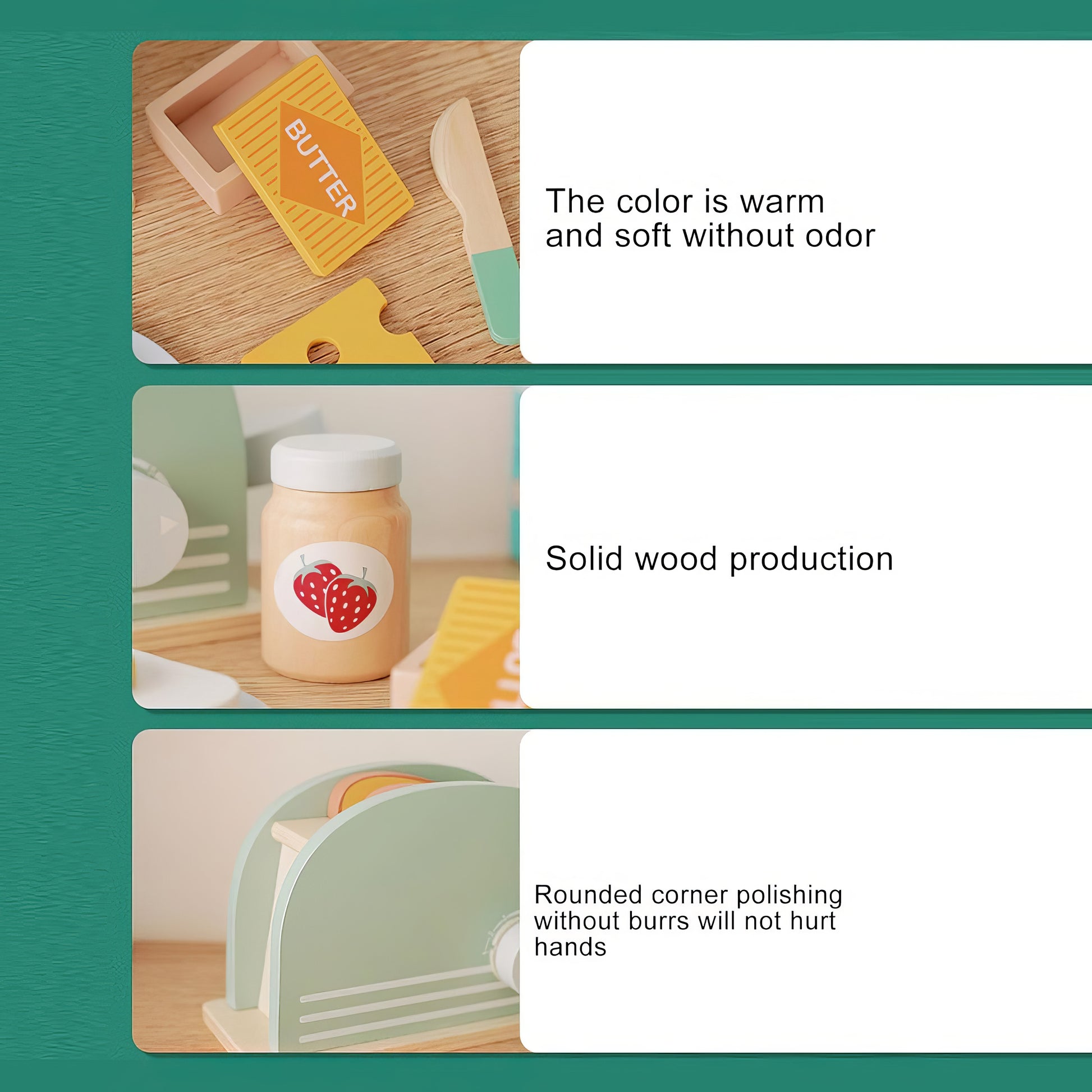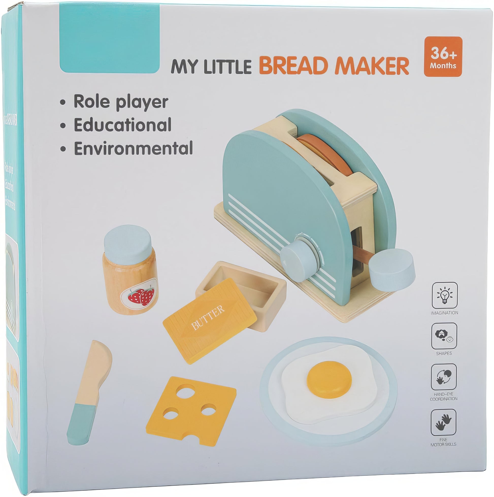 • Gerçekçi detaylara sahip bu ahşap tost makinesi seti, çocuklara kahvaltı hazırlama deneyimini eğlenceli hale getirir.