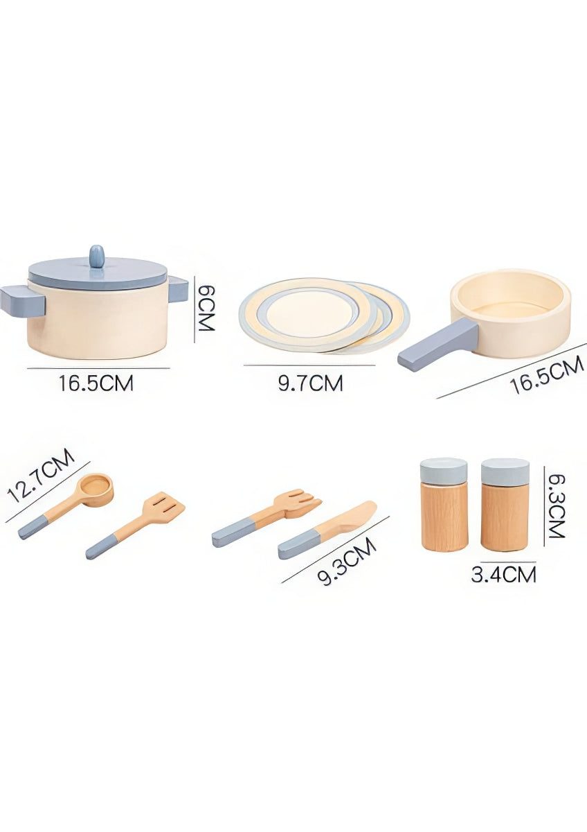 Montessori Ahşap Mavi Yemek Pişirme Seti – Eğitici Mutfak Oyuncağı