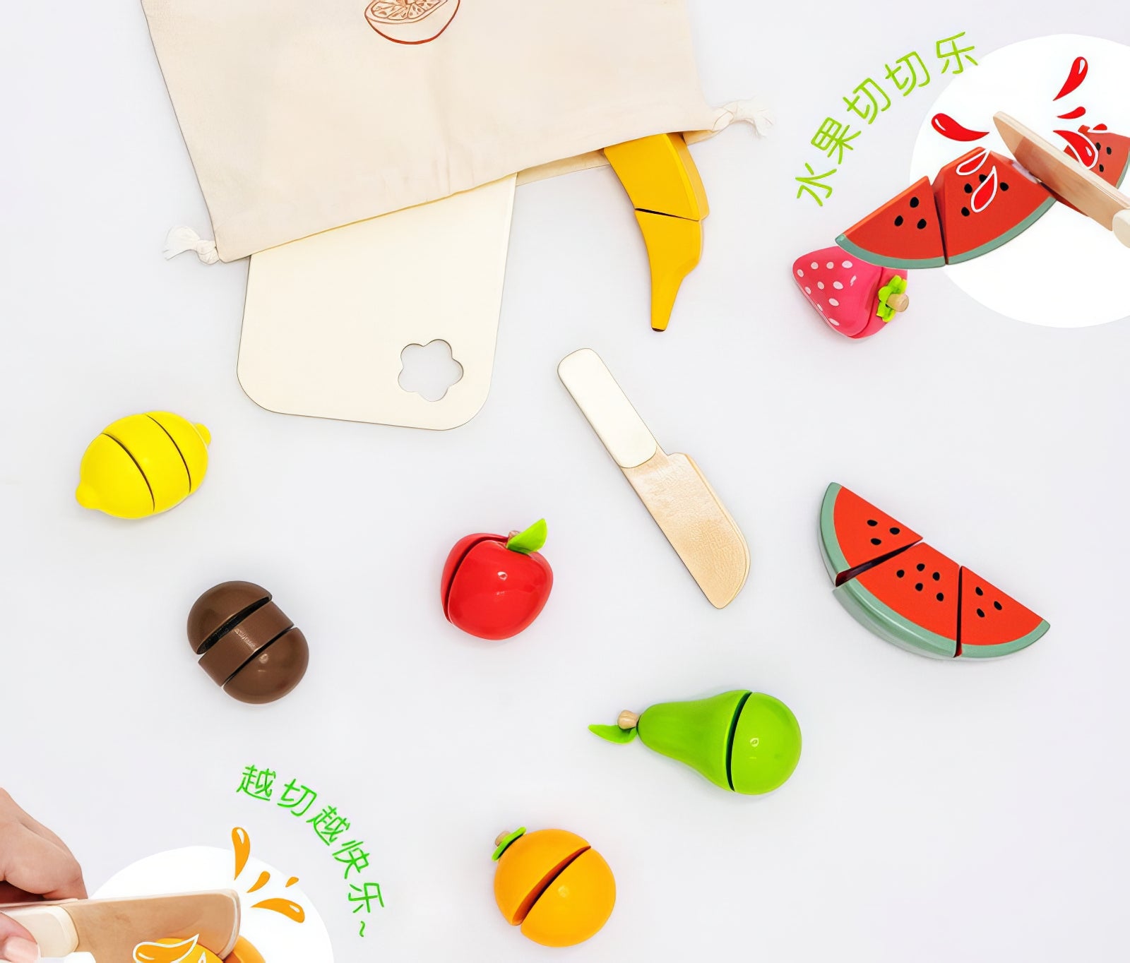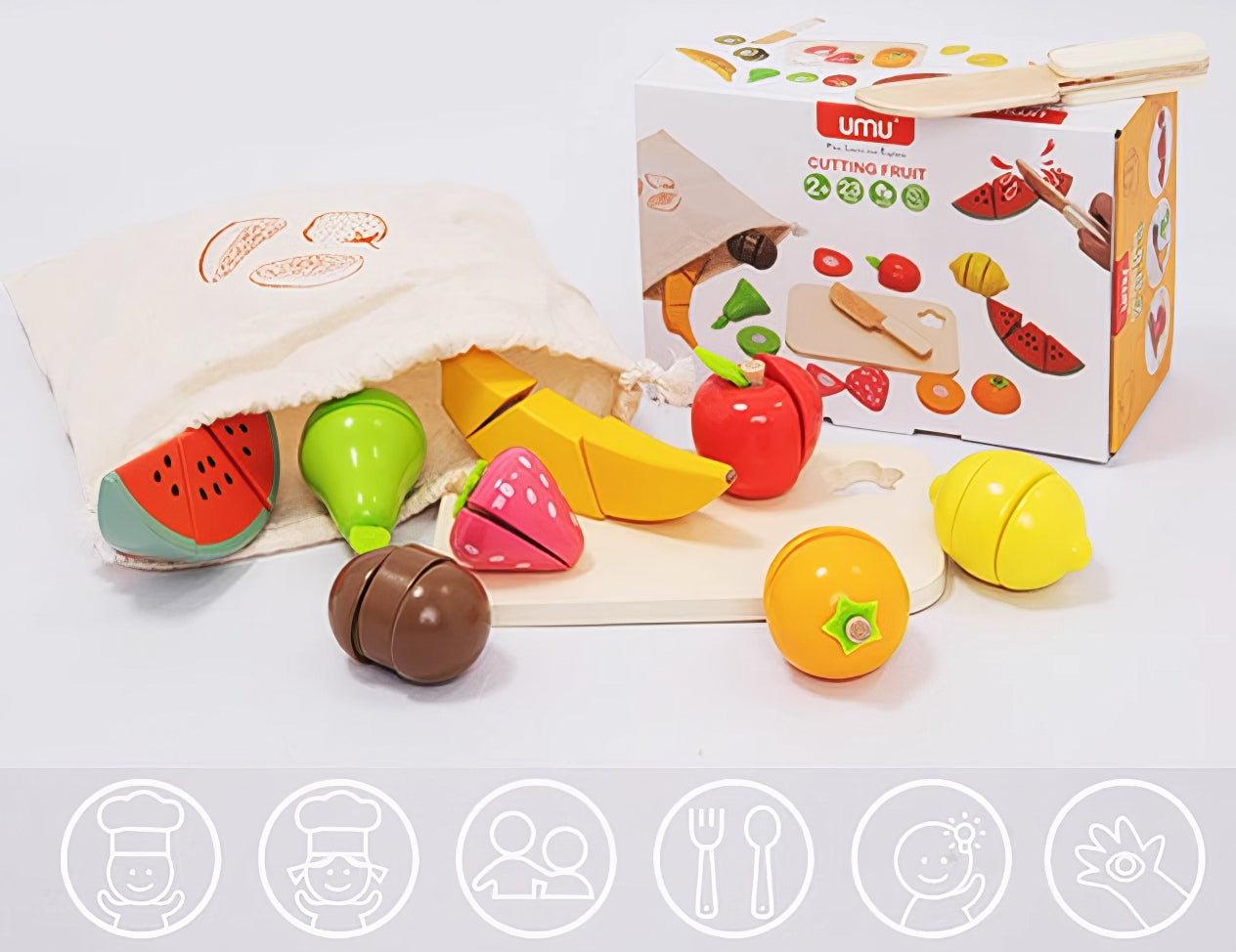 Eğlenceli ve Gerçekçi: Montessori Ahşap Meyve Kesme Seti (Umu)