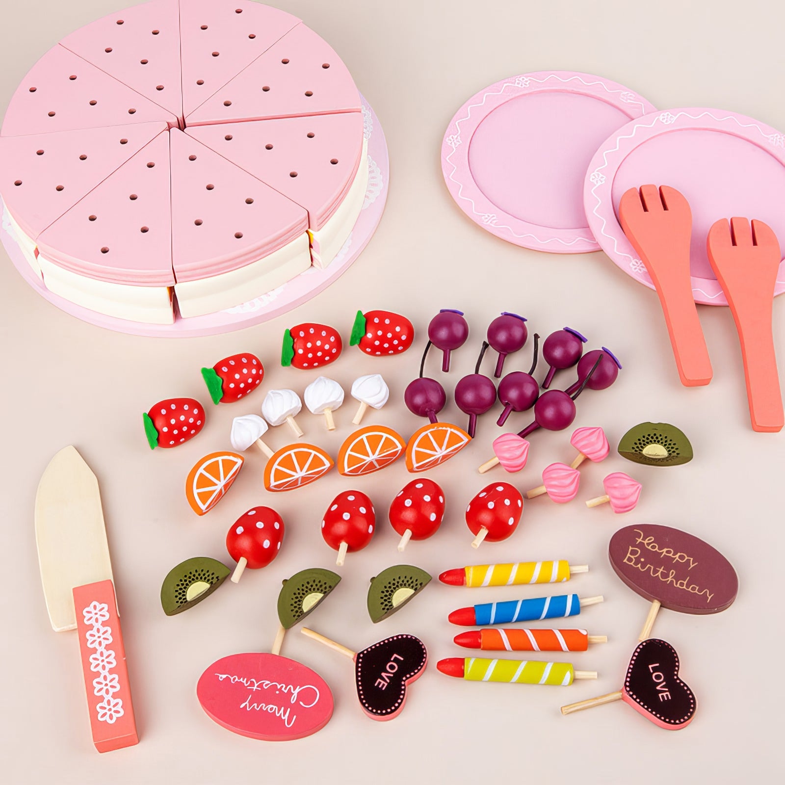 Montessori Ahşap Meyveli Doğum Günü Pasta Seti – Eğitici ve Eğlenceli Oyun