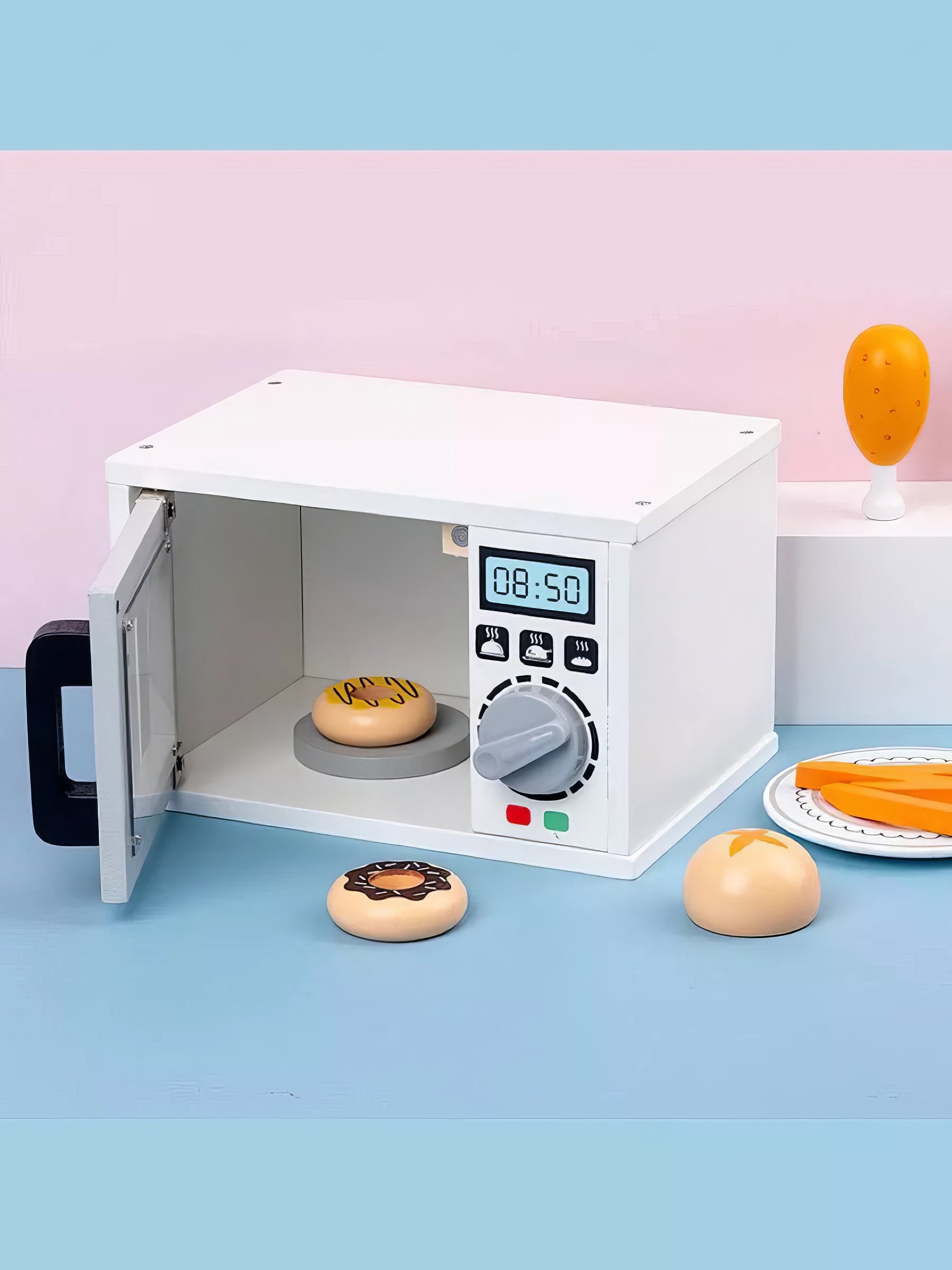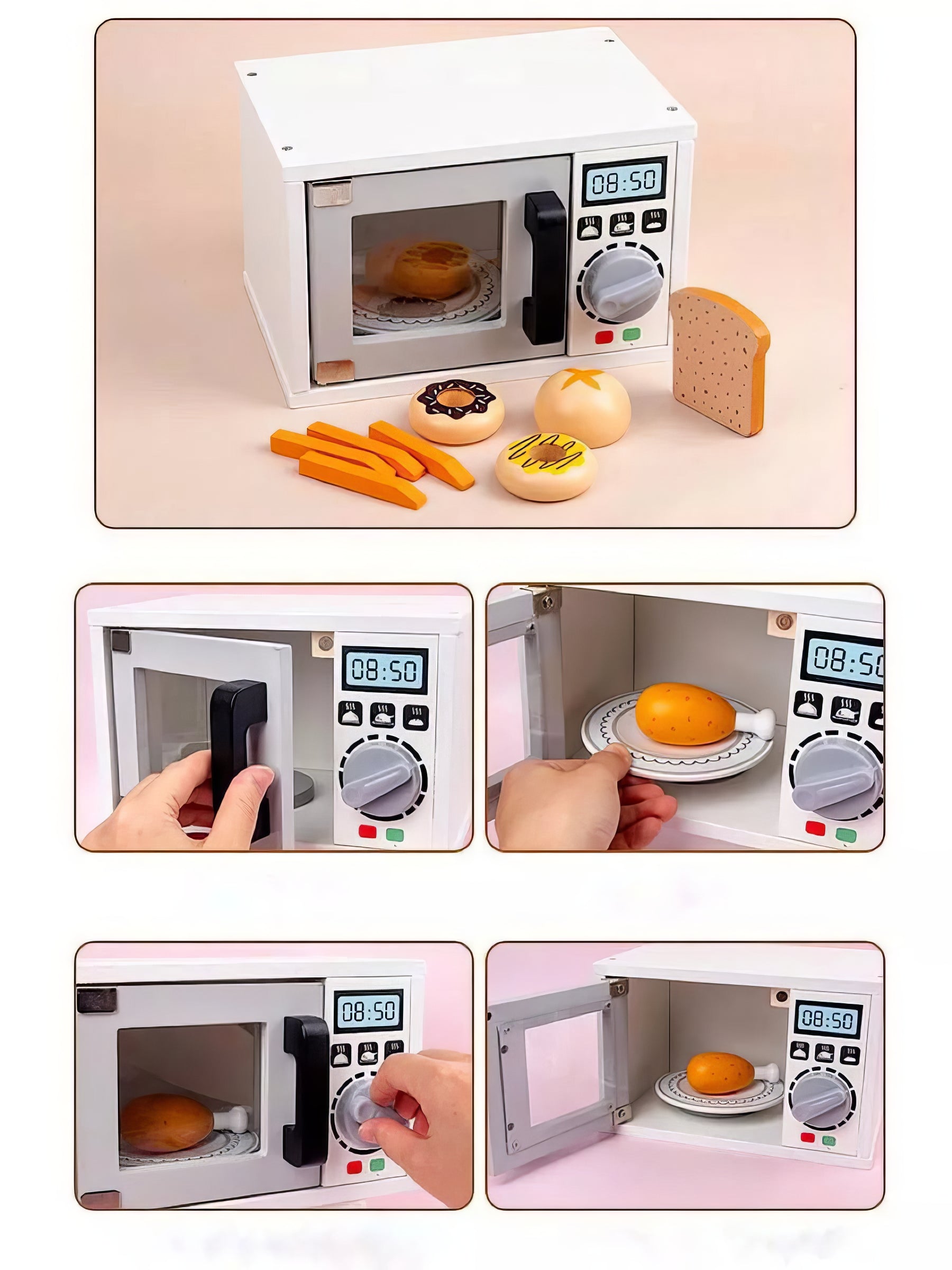 Montessori Ahşap Mikrodalga Fırın Seti – Gerçekçi Mutfak Oyuncağı ile Eğitici Oyun Deneyimi