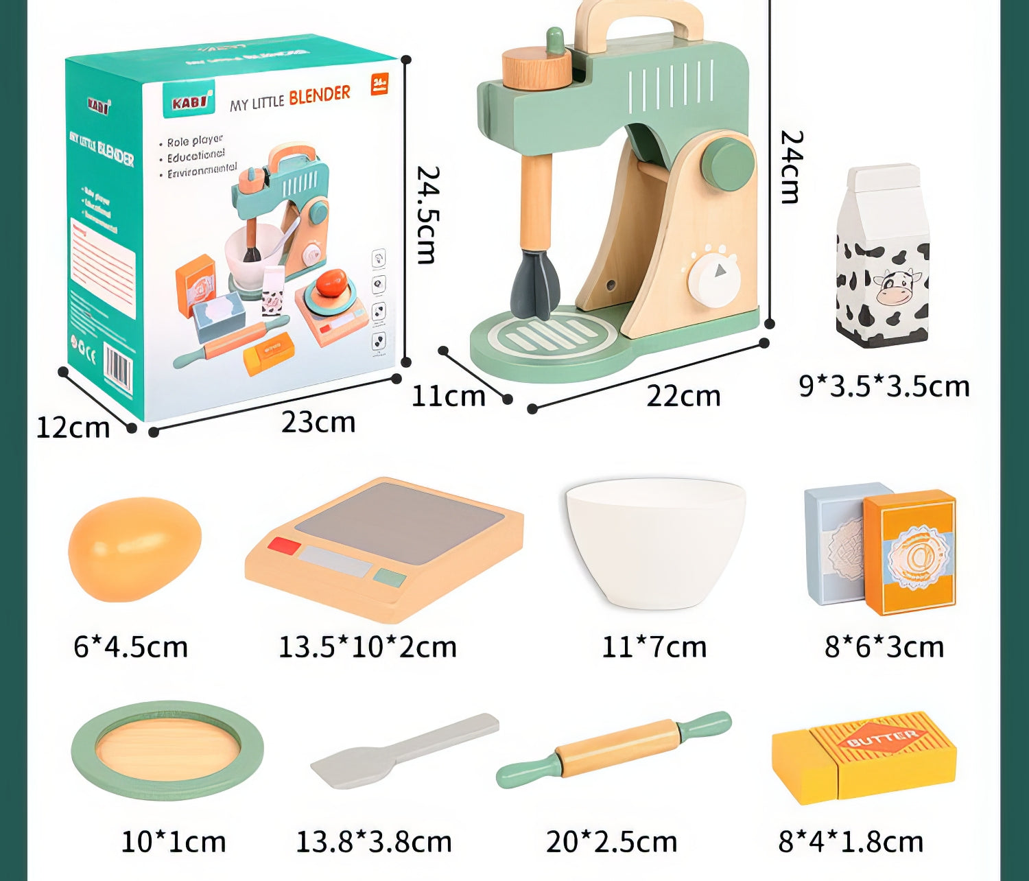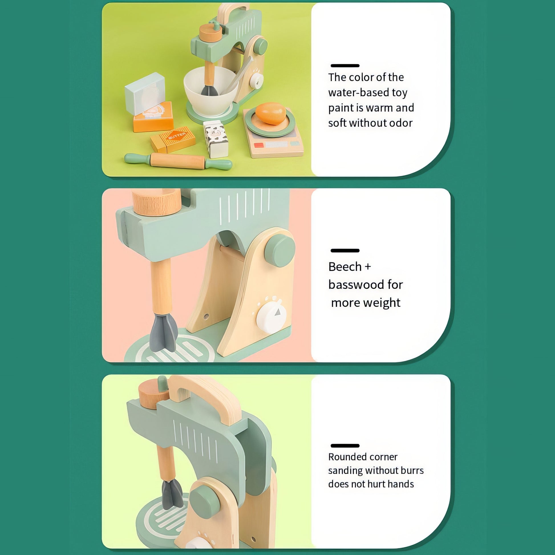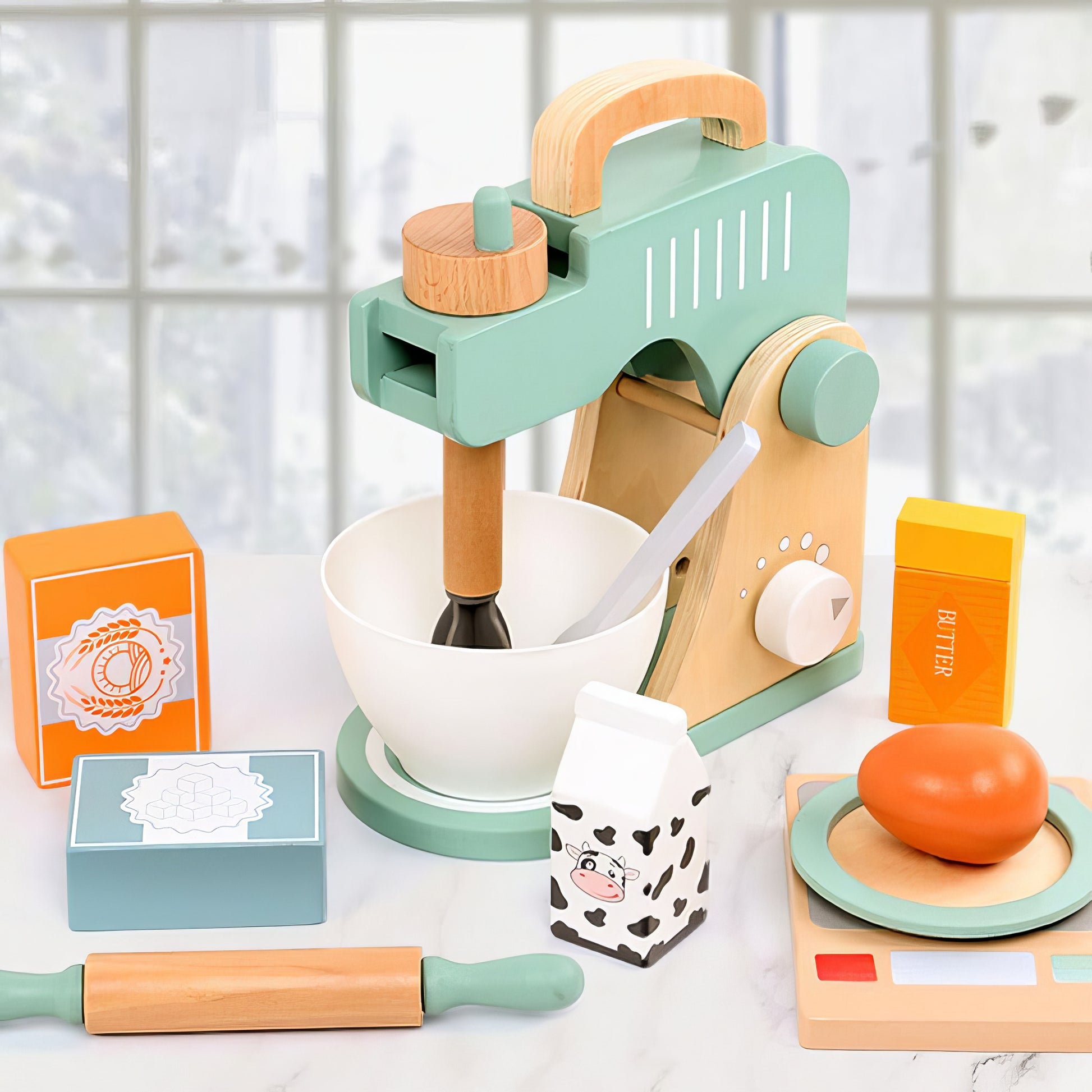 Montessori Ahşap Mikser Standı – Eğitici Mutfak Oyuncak Seti