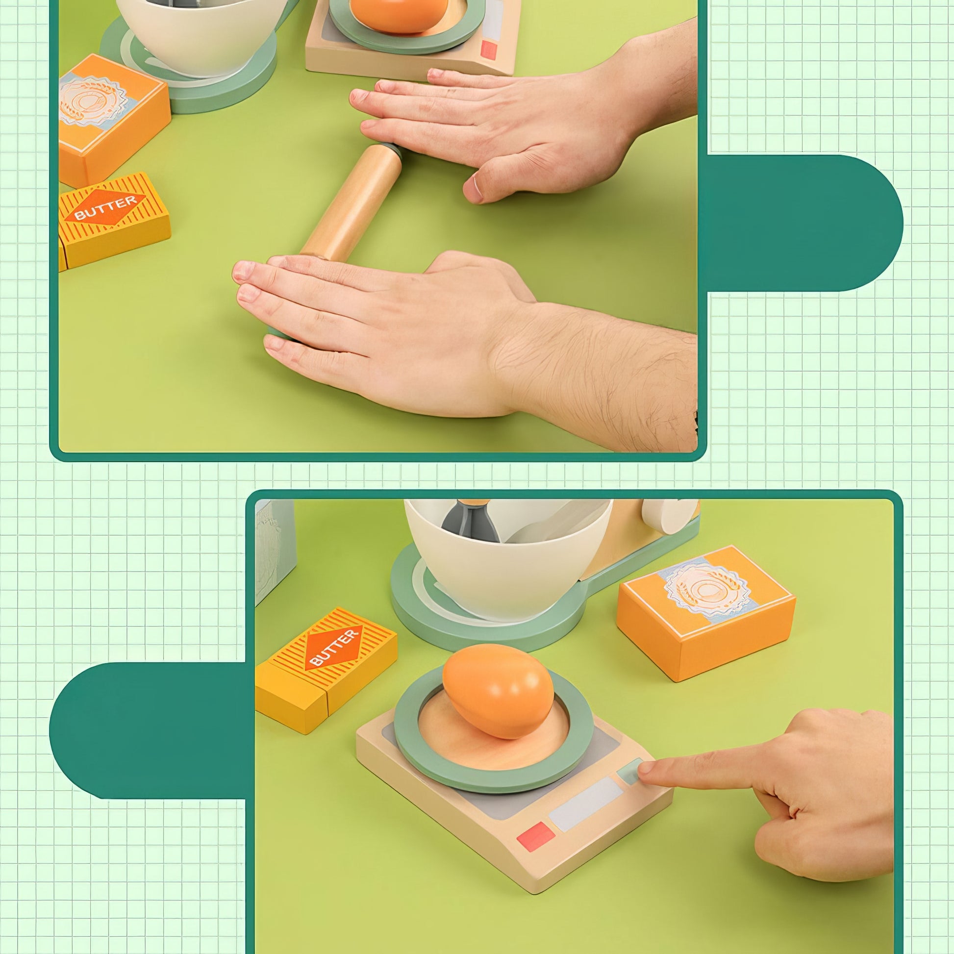 TR/Montessori Ahşap Kurabiye Oyuncak Seti - 22 Parça Eğitici Mutfak Oyunu (24x30 cm) Türkiyeden Gönderim