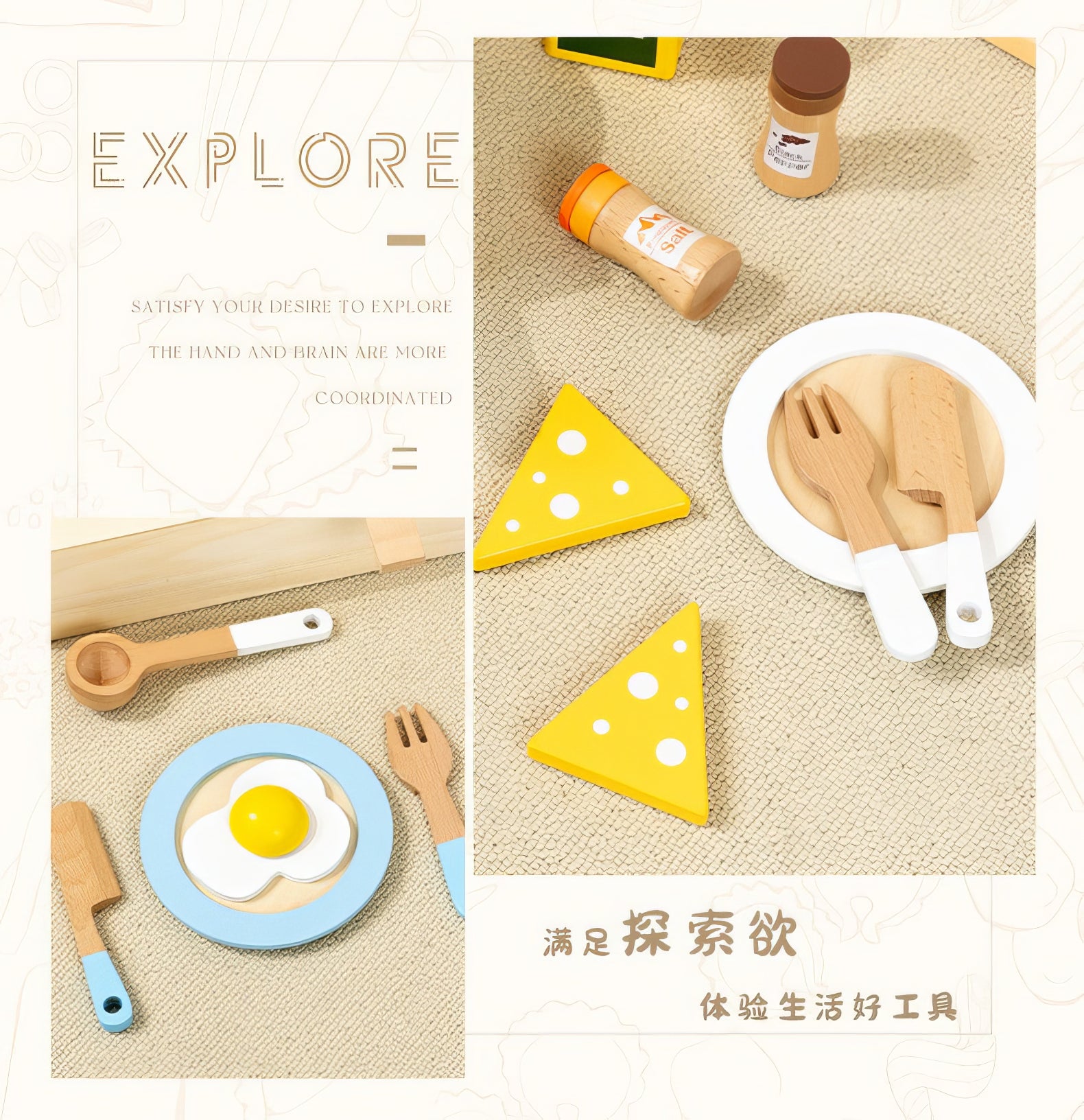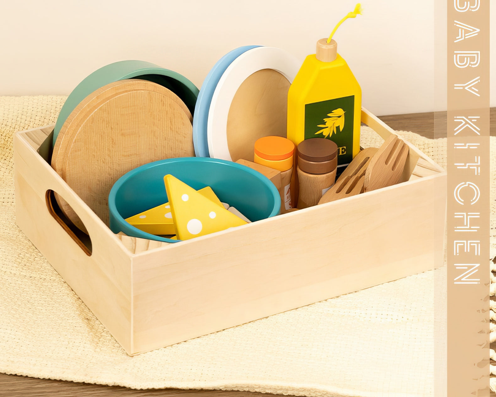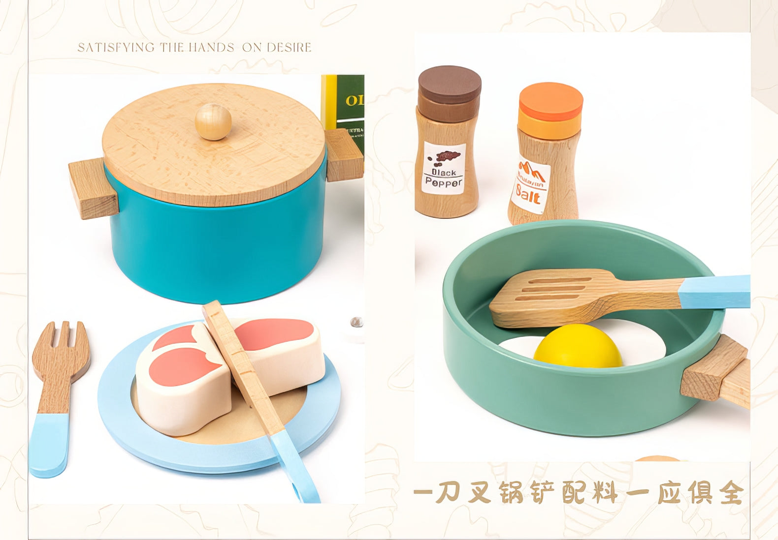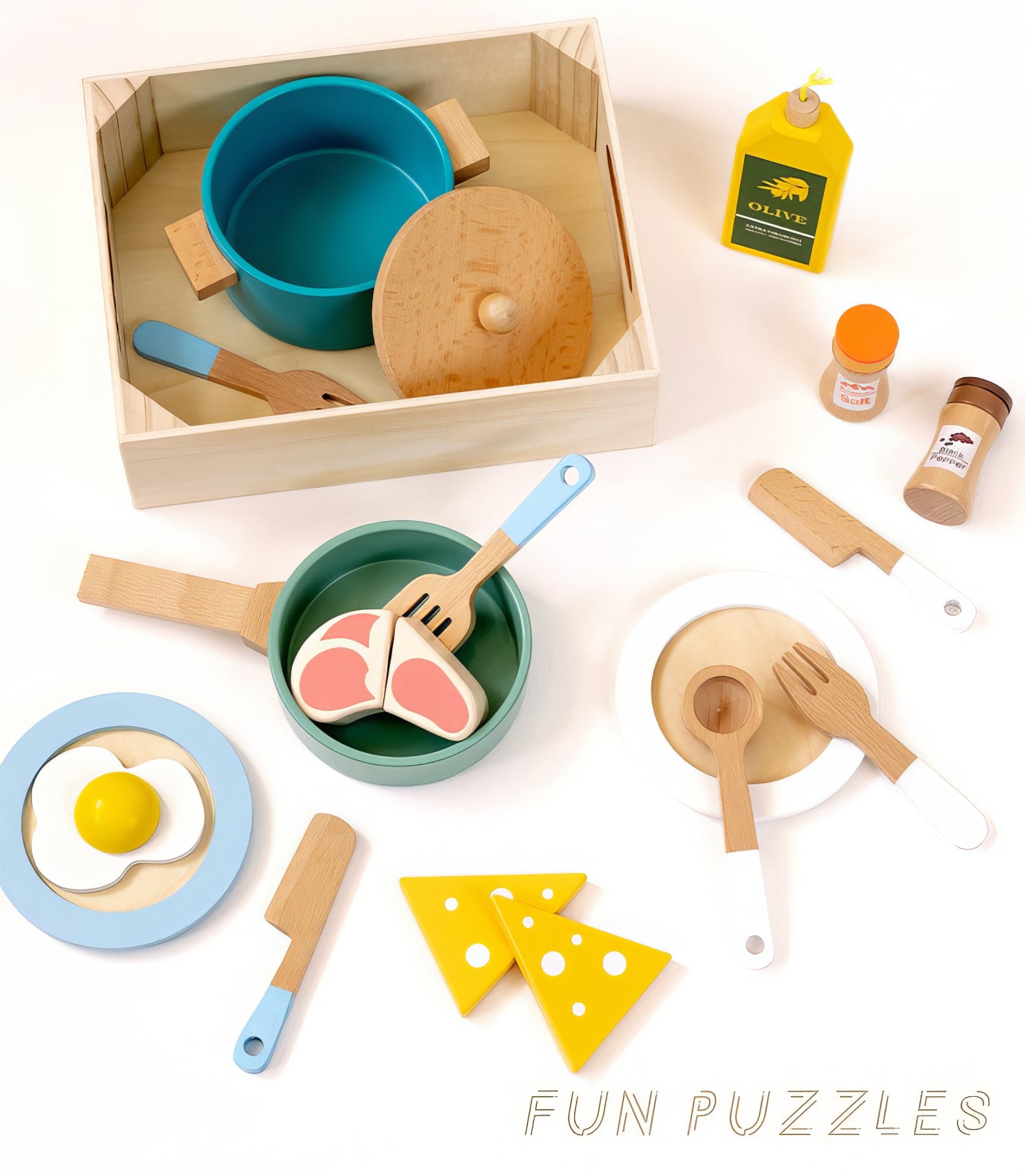 Montessori Ahşap Yemek Pişirme Seti – Eğitici Mutfak Oyuncak Seti (20 Parça)