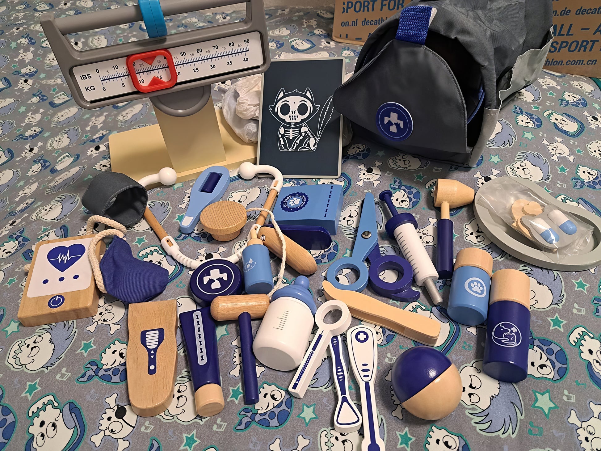 • Set içinde stetoskop, termometre, iğne, şırınga, makas gibi zengin aksesuarlar yer alır.