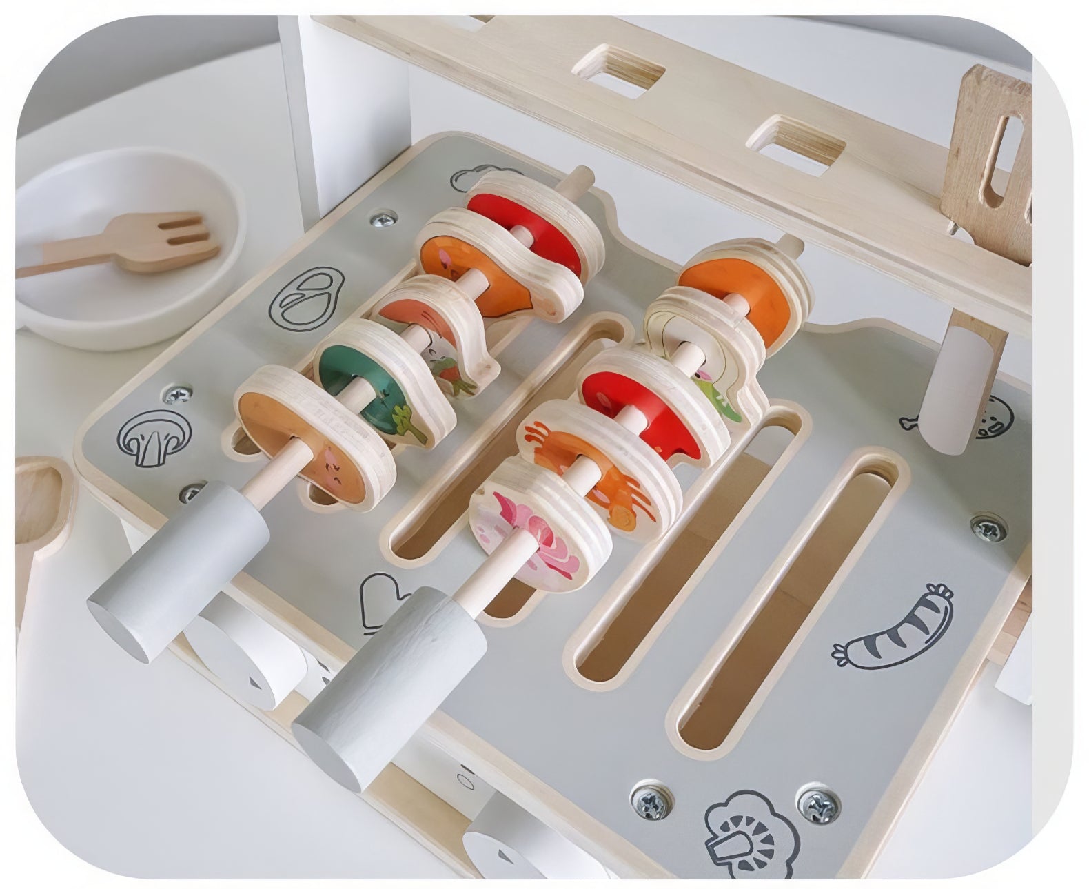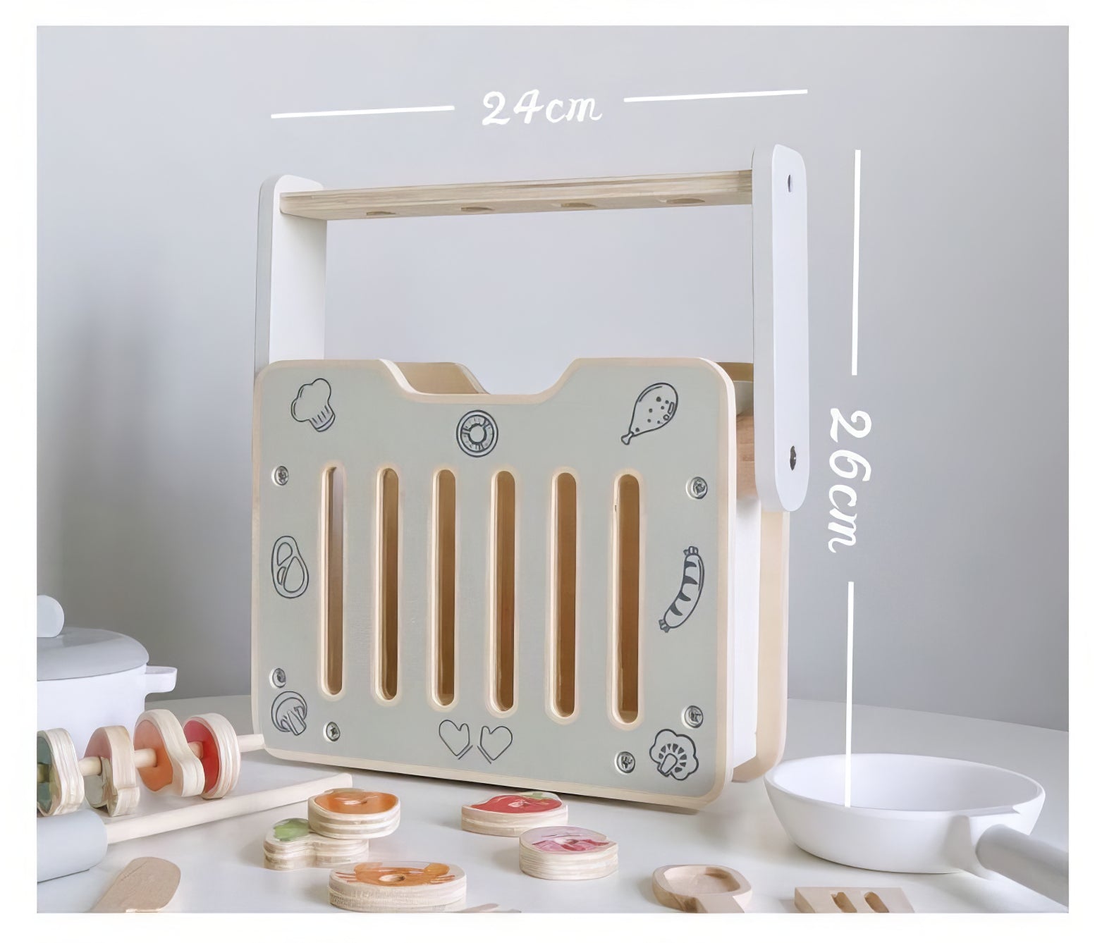Montessori Ahşap Mini Pişirme / Barbekü Seti – Küçük Şefler İçin Eğlenceli Mutfak Oyunu