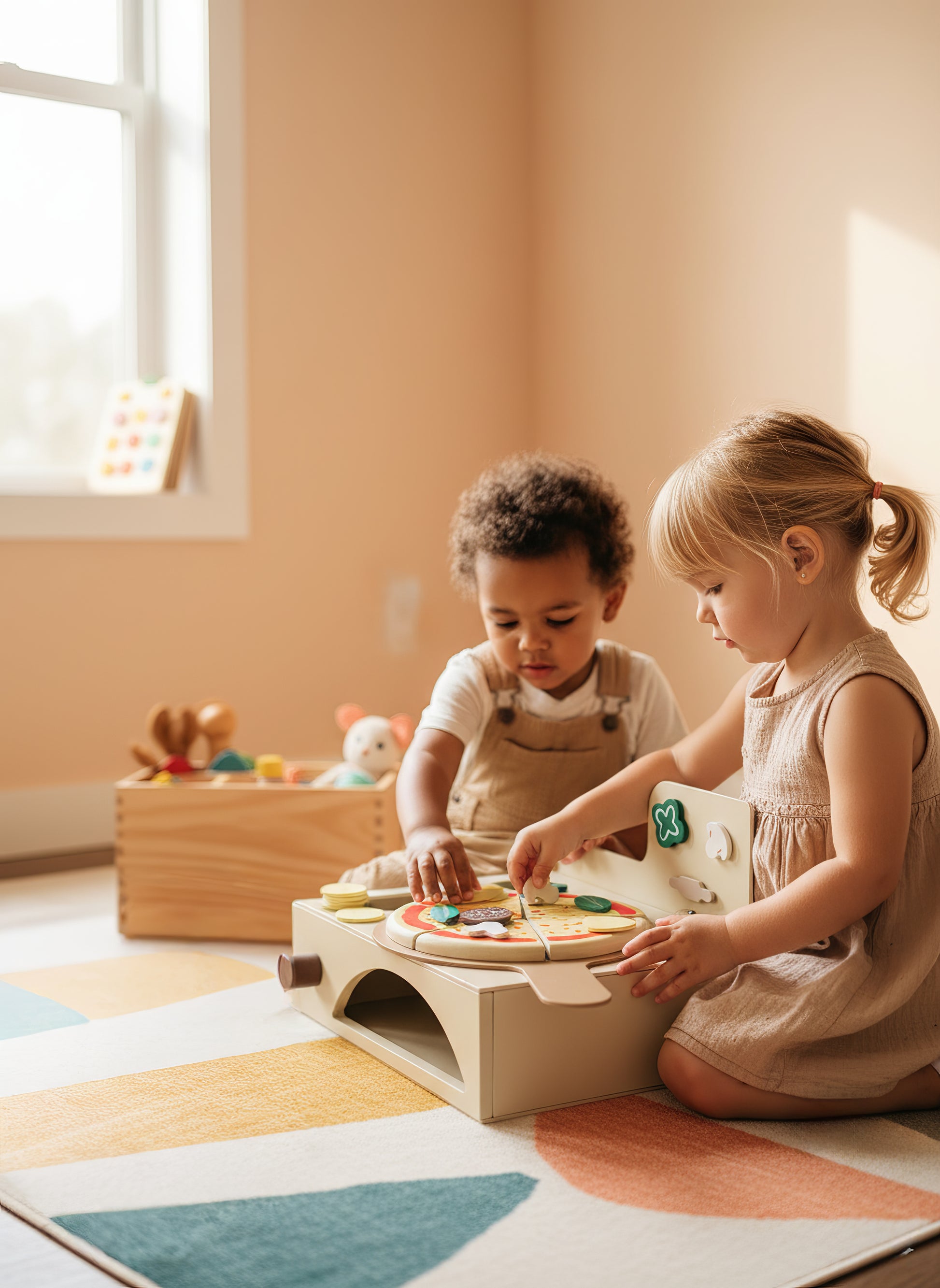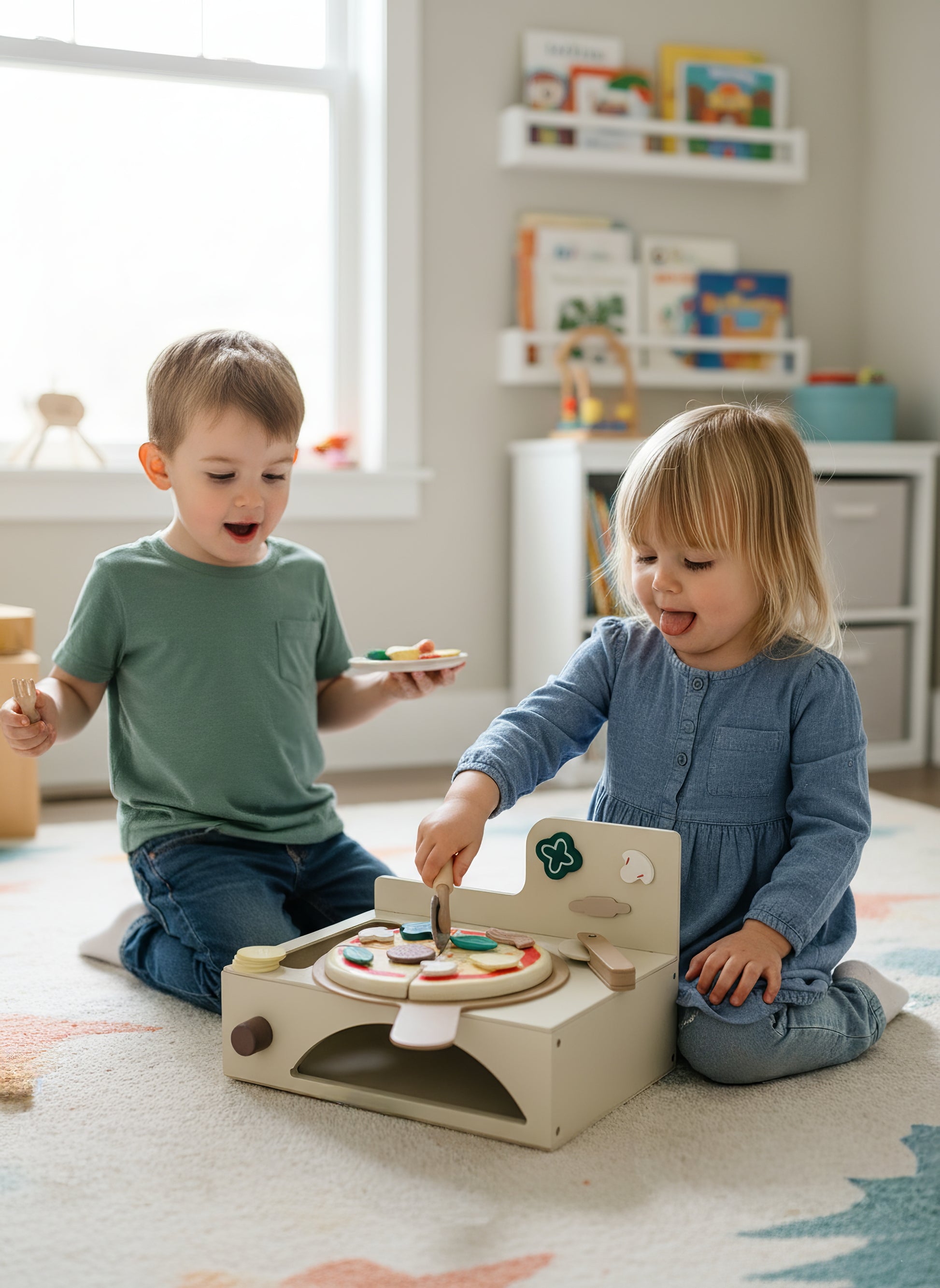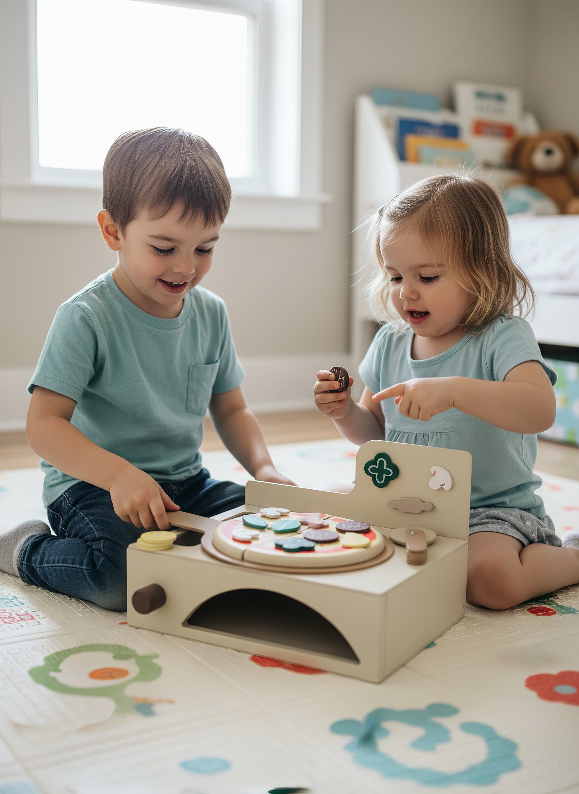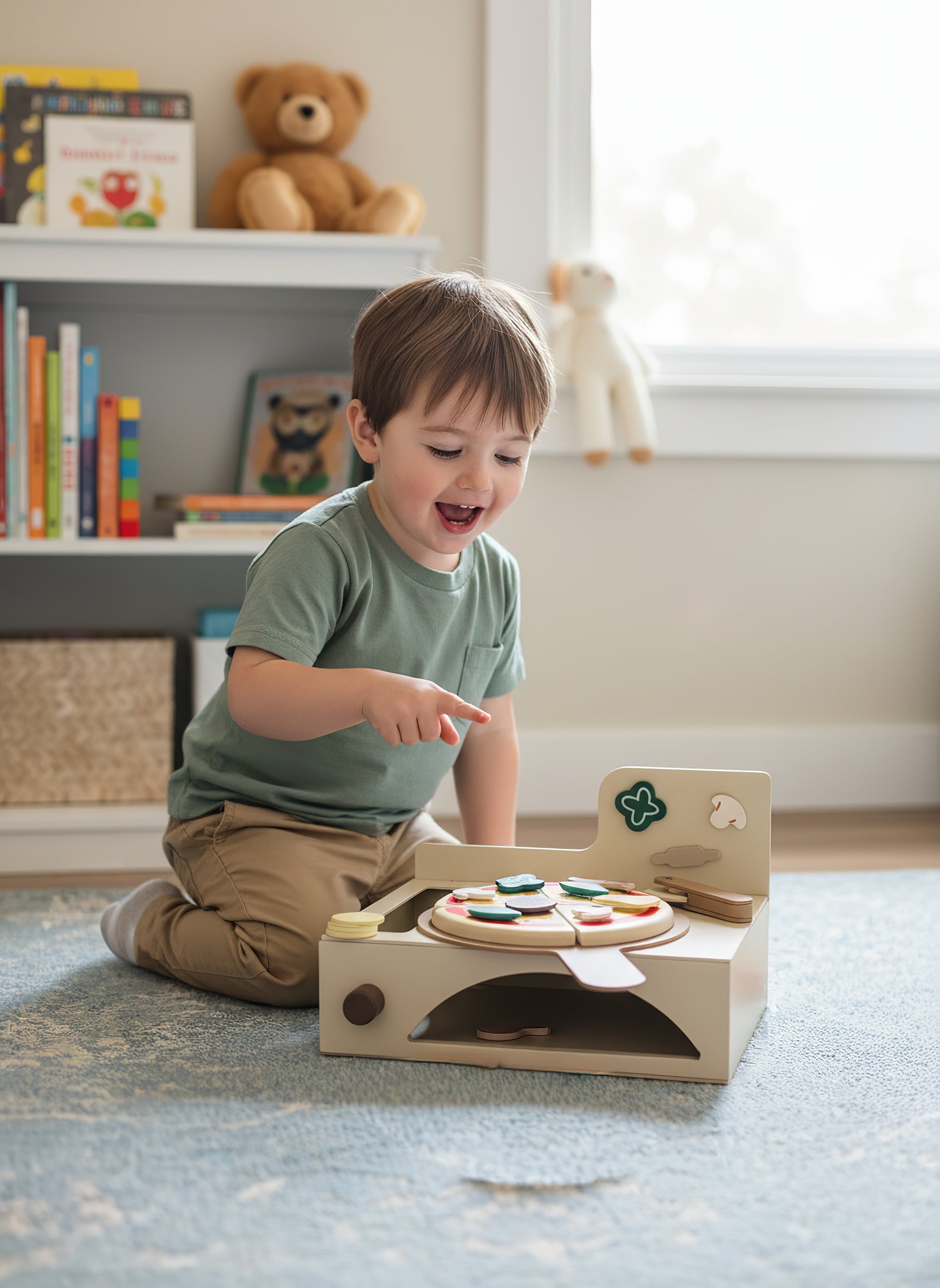 Çocukların hayal gücünü, el becerilerini ve sosyal gelişimlerini destekleyen bu Montessori ilhamlı 13 parçalık ahşap fırınlı pizza seti, hem eğitici hem de eğlenceli bir oyun deneyimi sunar.